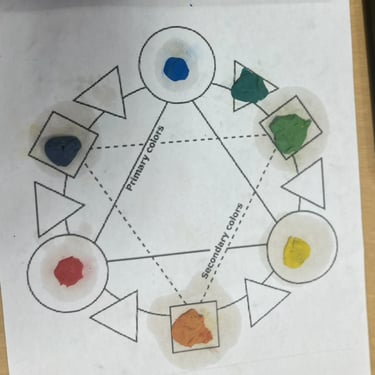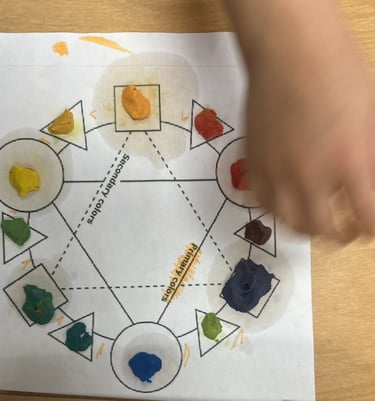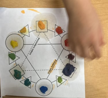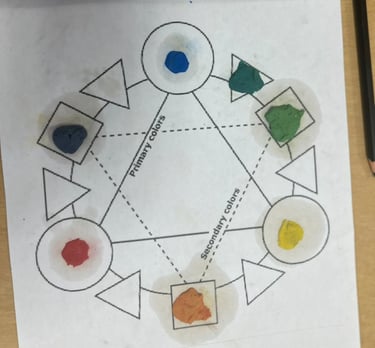 Grade One students start with just the primary colours of plasticine. Through exploration of the colour wheel, they learned about secondary and tertiary colours, helping them to learn with hands-on experiences. They demonstrated their learning through verbally explaining this process.